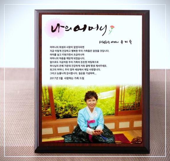 저희를 이토록 건강하고 올바르게 키워주신 어머니께 사랑과 감사드리는 마음을 담아 위대한 어머니상을 드립니다.